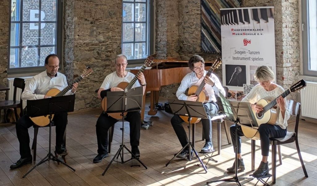 Am 08. März durfte das „hauseigene“ Gitarrenensemble der Radevormwalder Musikschule das Konzert mit französischer Kammermusik mit 2 Stücken eröffnen. Danach war das wunderbare Ensemble Mel Bonis mit Cello, Viola, Violinen und Klavier zu hören. Alle haben sich sehr über das „volle Haus“ und die überaus freundliche Reaktion des Publikums gefreut.